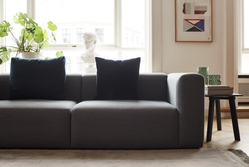 • Walnut Wood finish with Charcoal Fabric upholstery